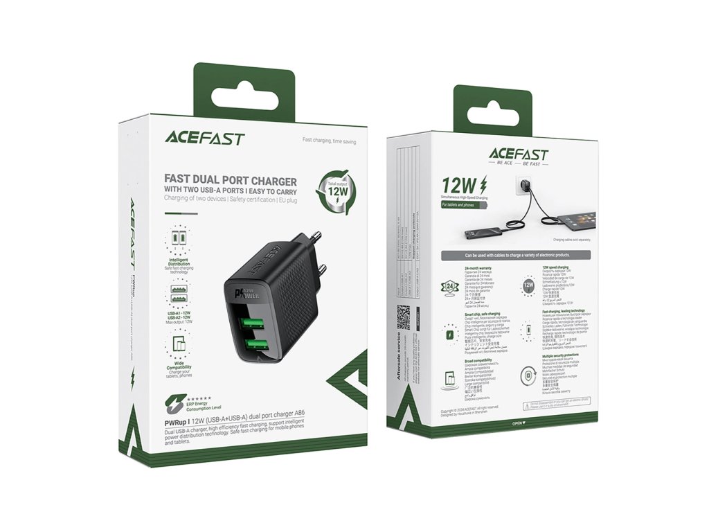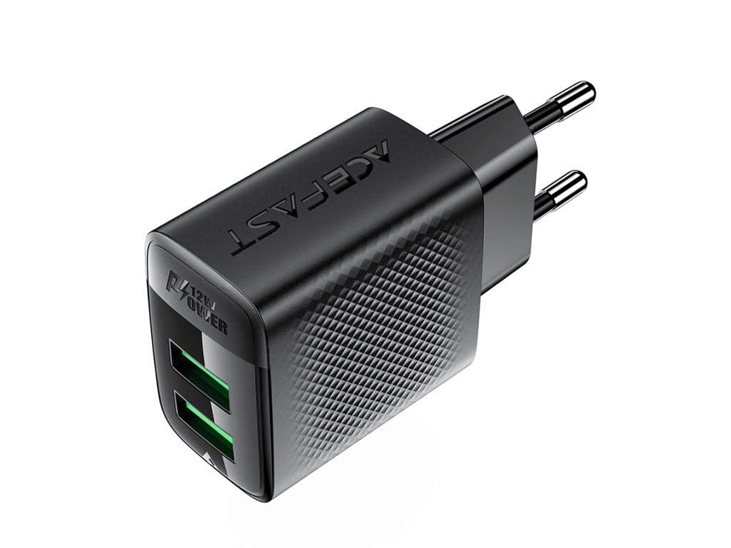 Acefast A86 nabíjačka 2× USB-A, 12W, čierna