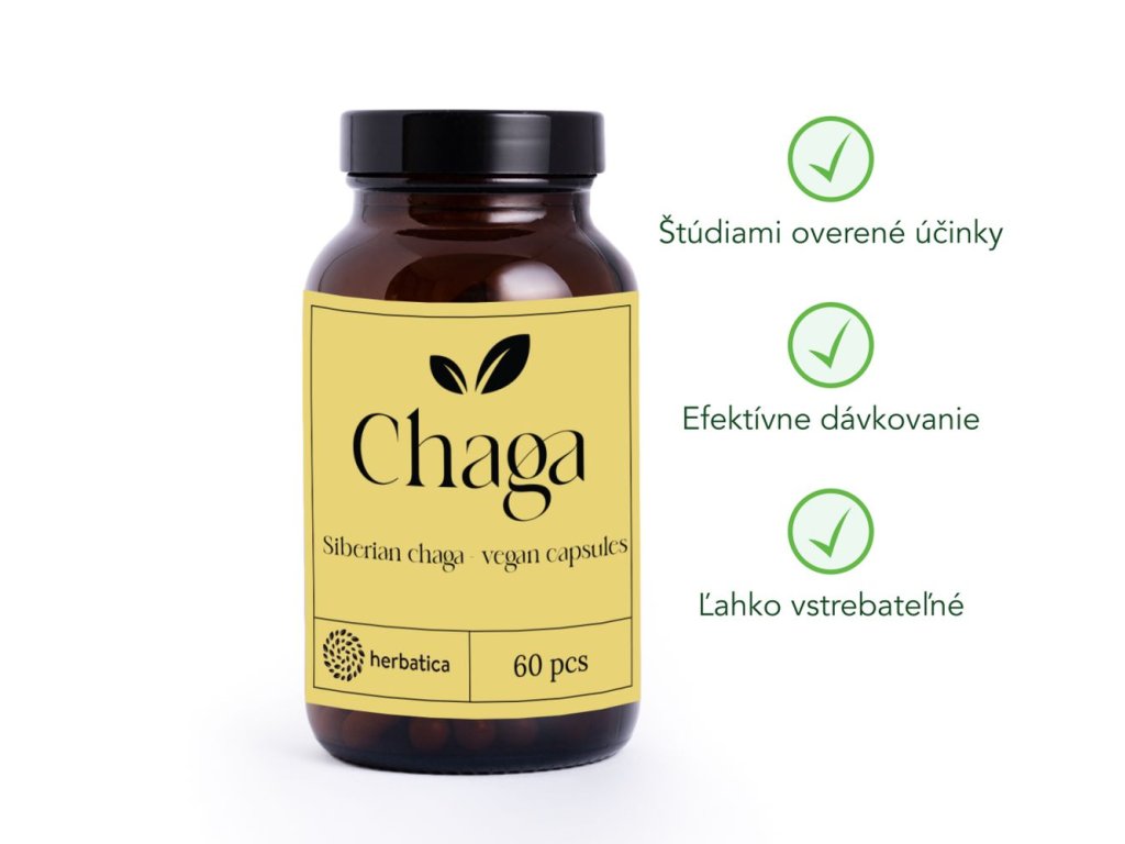| Zloženie: | sibirská čaga (obsah v 1 kapsule: 300mg), HPMC\* (obsah v 1 kapsule 100mg) \*HPMC= Hydroxypropylmethyl celulóza |