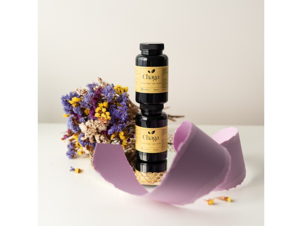 100 % extrakt z huby čaga (Inonotus obliquus) v rastlinnej kapsule (HPMC).