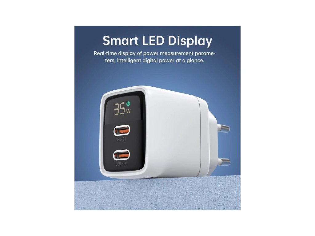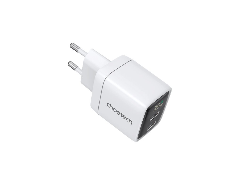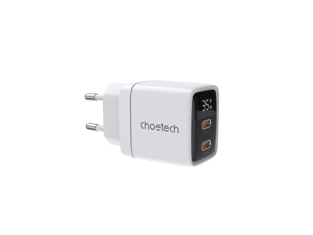 Choetech nabíjačka GaN 35W s 2× USB-C a LED displejom - biela
