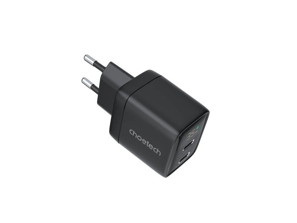 Choetech nabíjačka GaN 35W s 2× USB-C a LED displejom - čierna