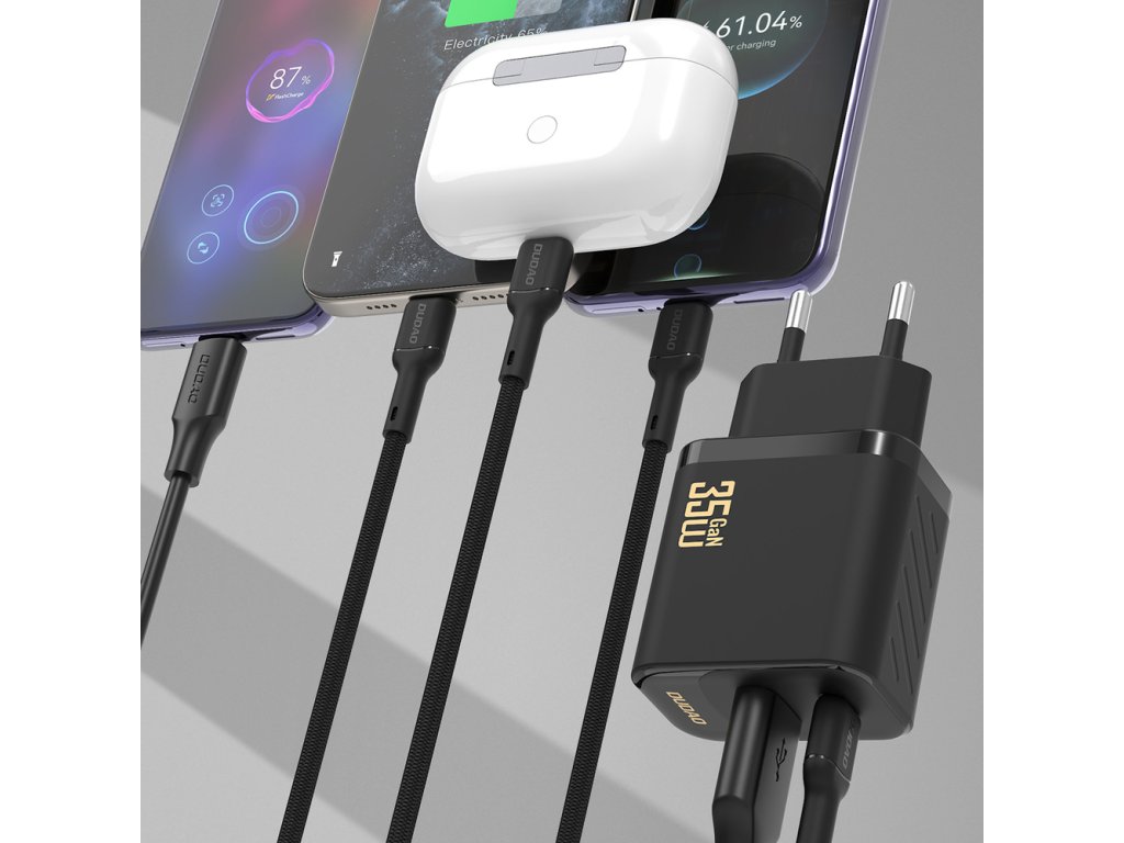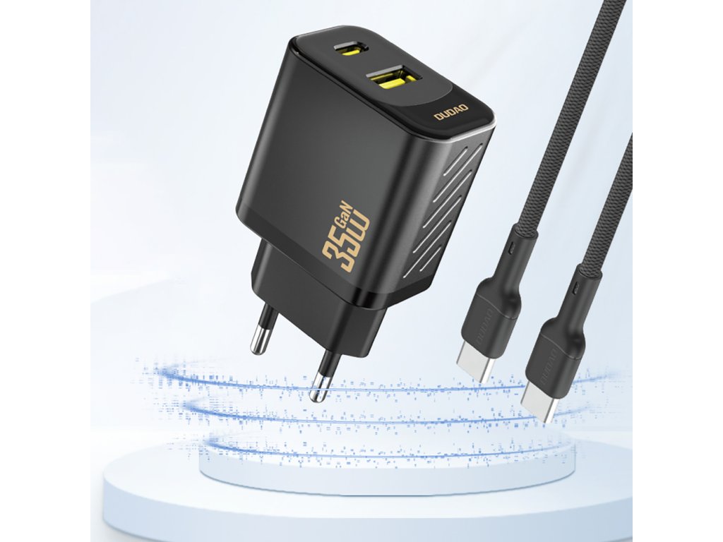 Dudao A27MaxC s GaN, USB-A a USB-C výstupom, 35W + kábel - Čierna
