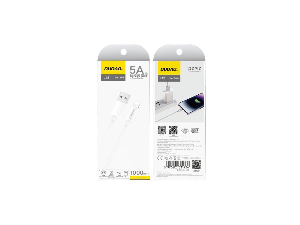 Dudao L4SL je praktický kábel s konektormi USB-A / Lightning, určený pre iPhony, iPady, iPody aj AirPods. Podporuje nabíjanie výkonom až 2 A a umožňuje aj prenos dát medzi zariadením a počítačom.