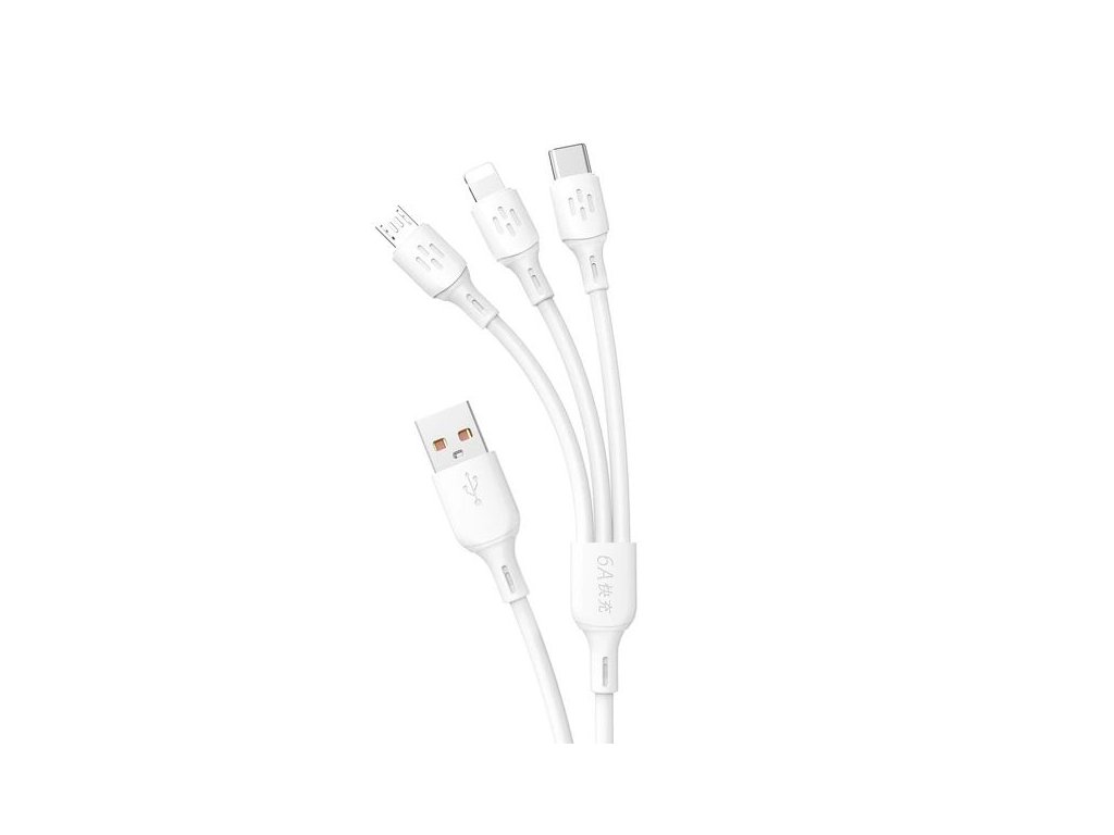 Univerzálny USB kábel 3v1 je praktické riešenie pre každého, kto potrebuje nabíjať rôzne zariadenia pomocou jedného kábla. Vďaka konektorom USB-C, MicroUSB a Lightning ponúka širokú kompatibilitu so smartfónmi, tabletmi, slúchadlami aj inou elektronikou. Podporuje prúd až 6A a rýchlosť prenosu dát 480 Mb/s, takže zvládne rýchle nabíjanie aj spoľahlivý prenos súborov.