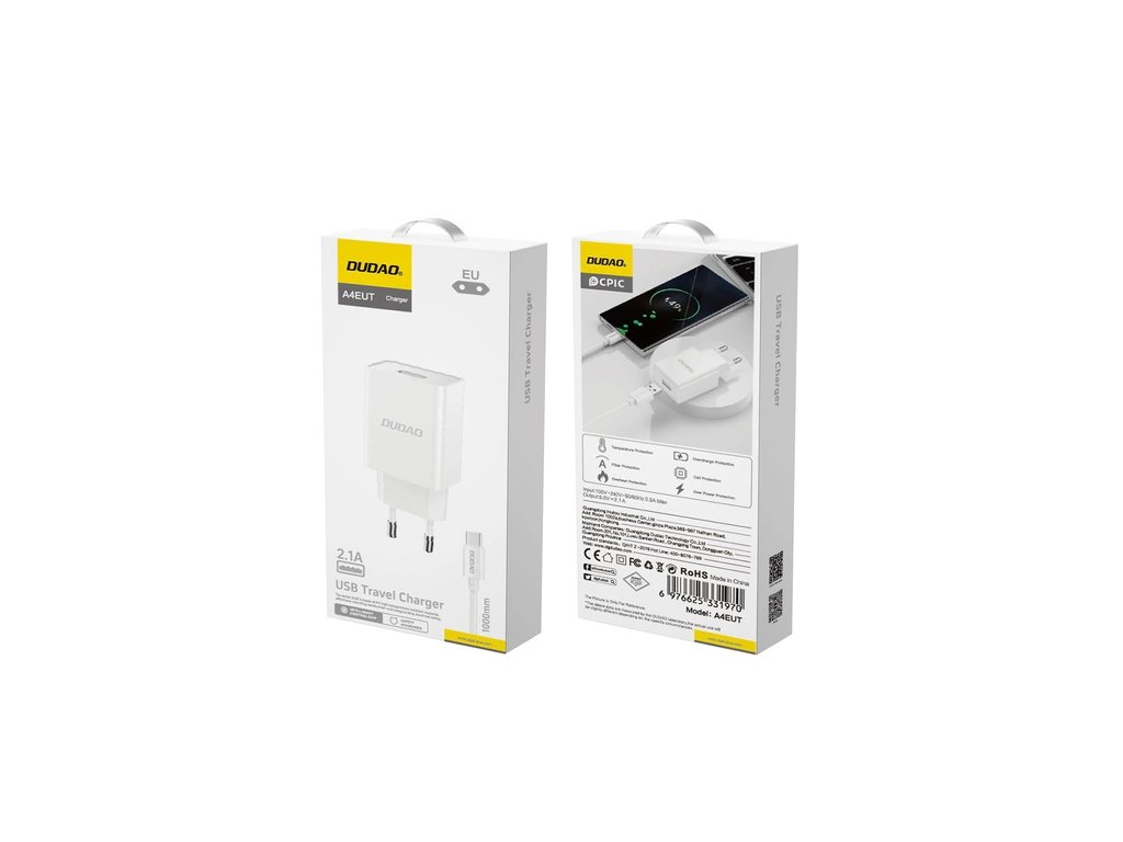 Kompaktná nabíjačka Dudao s výkonom 2.1 A a priloženým micro USB káblom. Vhodná na nabíjanie smartfónov, slúchadiel, powerbaniek a ďalších micro USB zariadení. Jednoduché...