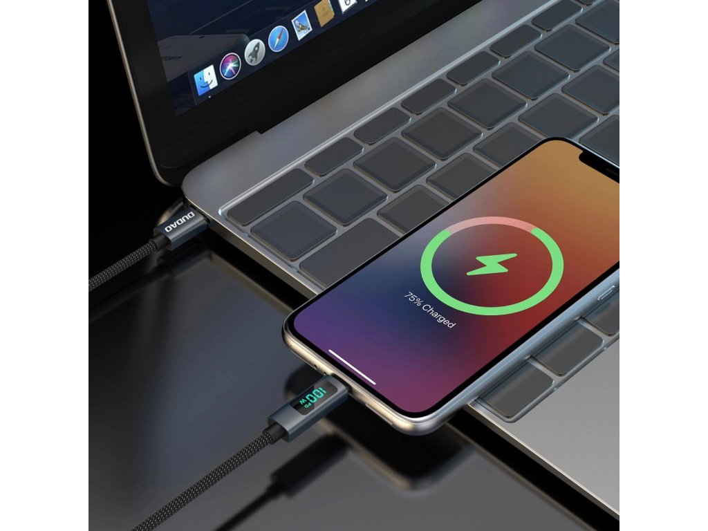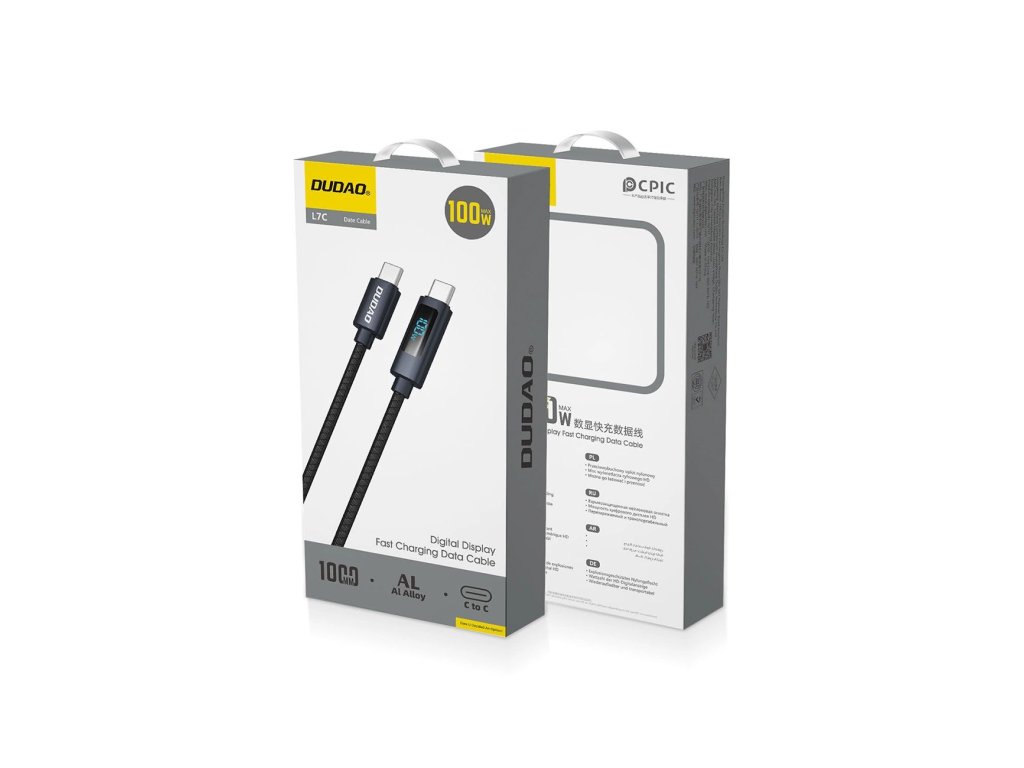 Dudao USB-C kábel 100W s LED displejom 1m – čierny