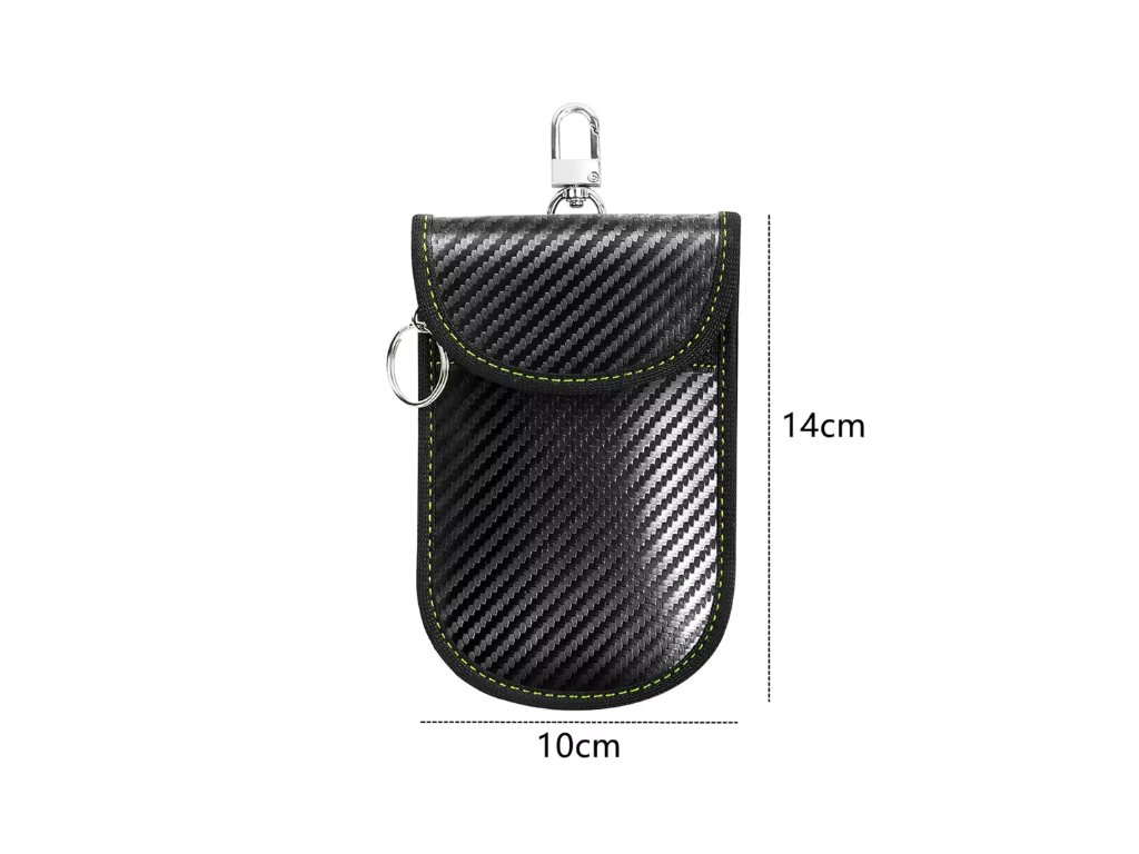 Vyrobené z odolného materiálu s uhlíkovým vzorom, lemované zeleným šitím a uzatvárané na suchý zips. Vďaka rozmerom 10 × 14 cm sa doň pohodlne zmestia kľúče od auta, kreditné karty či drobné elektronické zariadenia.