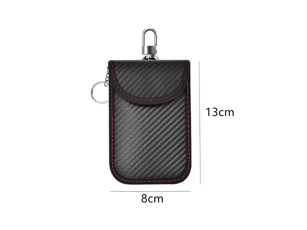 Vyrobené z odolného materiálu s uhlíkovým vzorom, lemované červeným šitím a uzatvárané na suchý zips. Vďaka rozmerom 8 × 13 cm sa doň pohodlne zmestia kľúče od auta, kreditné karty či drobné elektronické zariadenia.