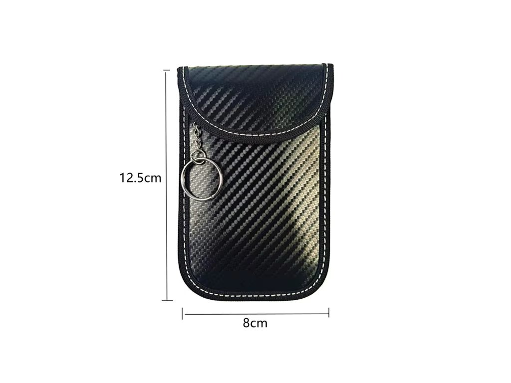 Vyrobené z odolného materiálu s uhlíkovým vzorom, lemované bielym šitím a uzatvárané na suchý zips. Vďaka rozmerom 8 × 12,5 cm sa doň pohodlne zmestia kľúče od auta, kreditné karty či drobné elektronické zariadenia.