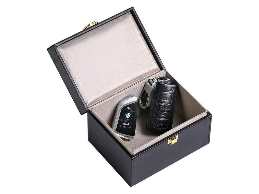 Faraday box je špeciálna skrinka vystlaná vodivou tieniacou vrstvou, ktorá zabraňuje prenikaniu elektromagnetických vĺn. Po vložení kľúčov, telefónu či platobnej karty dovnútra sa signál úplne zablokuje – zariadenie je „neviditeľné“ pre všetky skenery a čítačky.