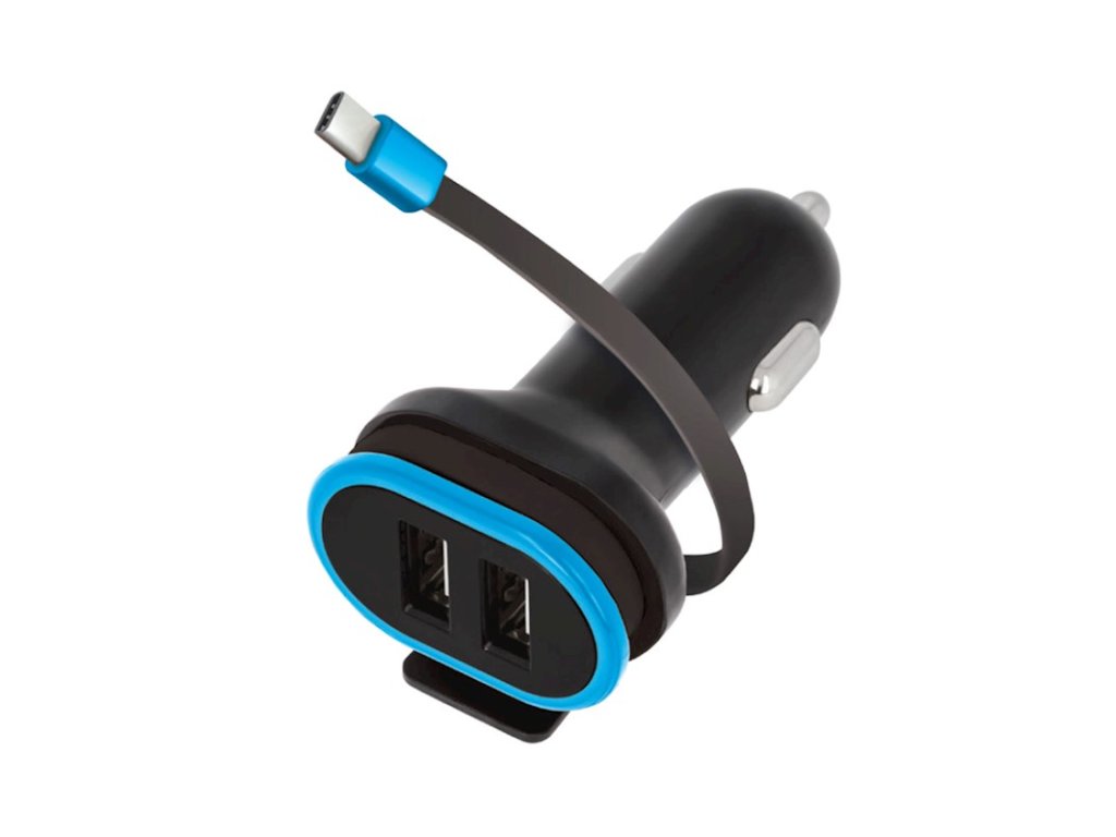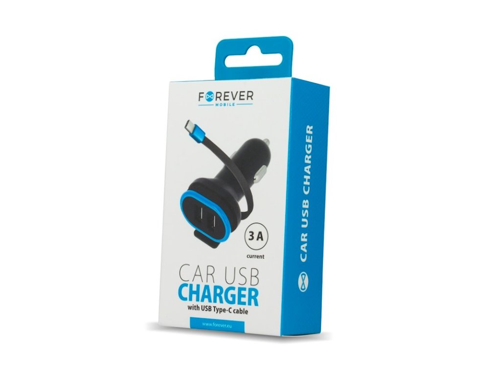 Forever autonabíjačka 2×USB-A 3A + USB-C kábel 0,2 m – čierna