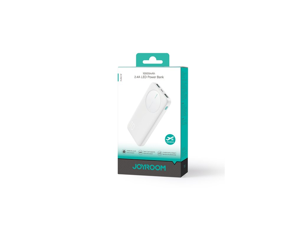 Prenosná externá batéria Joyroom JR-PBF12 s kapacitou 10 000 mAh. Vďaka trom výstupným portom (USB-A + USB-C) a podpore rýchlonabíjania sa stáva univerzálnym riešením pre nabíjanie smartfónov, tabletov a ďalšej techniky. Pevné a kvalitné prevedenie s ochrannými funkciami zabezpečuje spoľahlivé a bezpečné používanie.