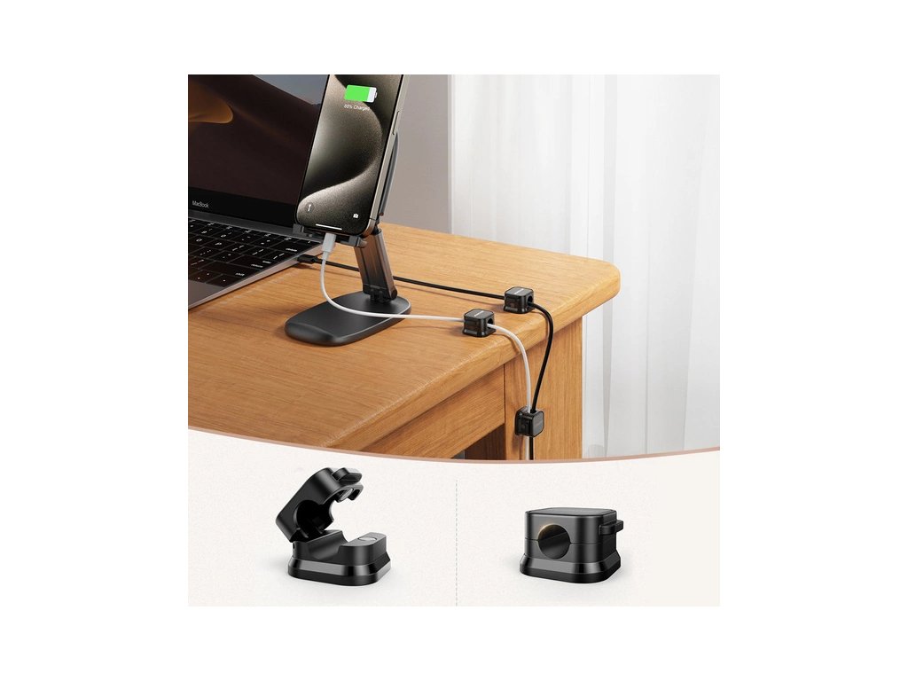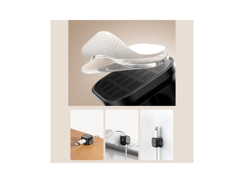 Magnetický organizér Joyroom JR-ZS368 v elegantnej čiernej farbe ti pomôže mať káble vždy upratané. V balení sa nachádza 6 kusov – 3 magnetické úchyty a 3 úchytové základne, ktoré pevne držia na stole, skrini či inom povrchu.
