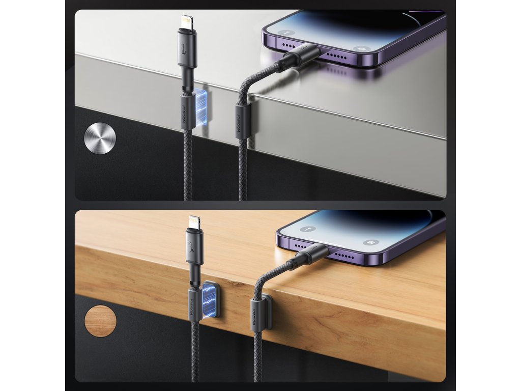 Joyroom USB-A na Lightning kábel s magnetickým úchytom 1,2m - šedý