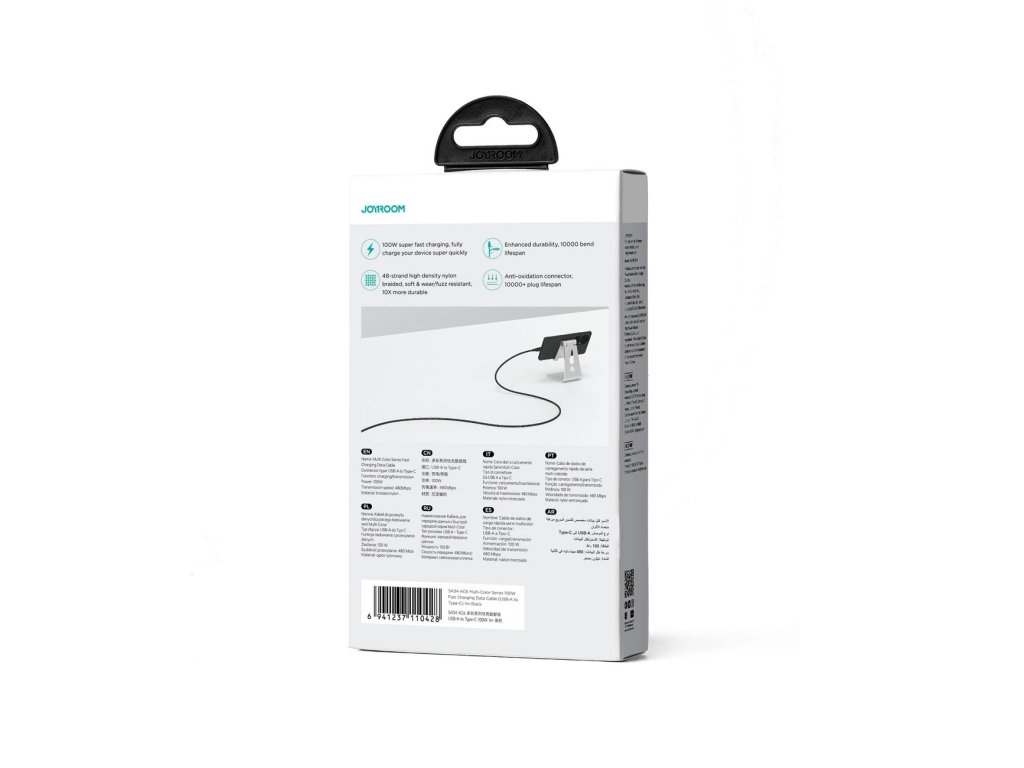 Kábel Joyroom S-A34 zo série Multi-Color Series poskytuje rýchle a stabilné nabíjanie s výkonom až 100 W (20V/5A), čo ho robí ideálnym riešením pre notebooky, tablety aj smartfóny. Konektory USB-A / USB-C zaručujú širokú kompatibilitu a flexibilitu pri každodennom používaní.