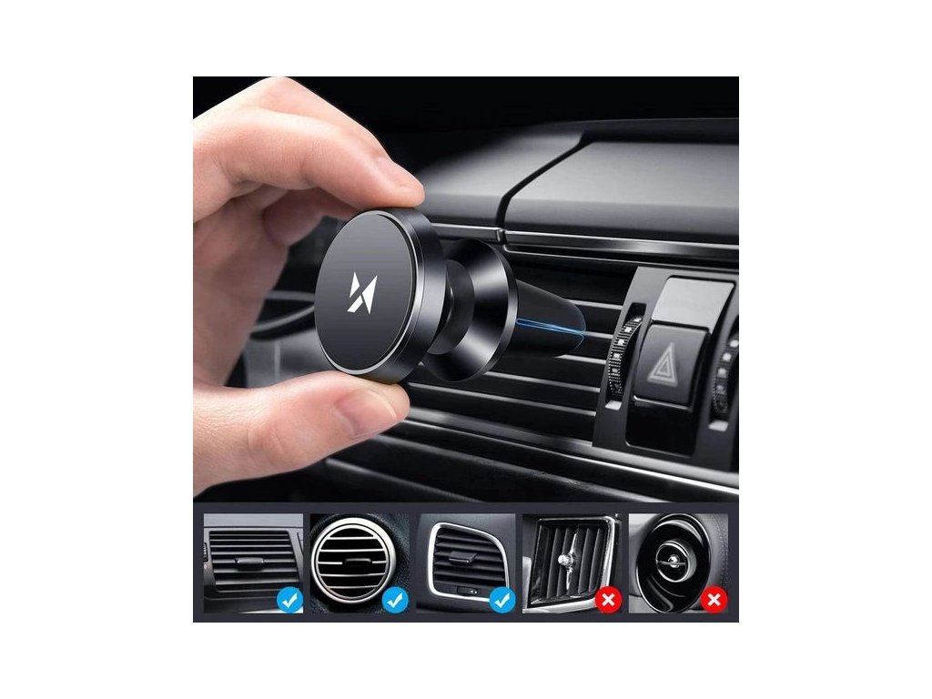 Stačí zasunúť držiak do mriežky ventilácie a priložiť telefón – magnety sa postarajú o okamžité a pevné uchytenie. Vhodný pre všetky modely telefónov s kovovou doštičkou alebo kompatibilným puzdrom.