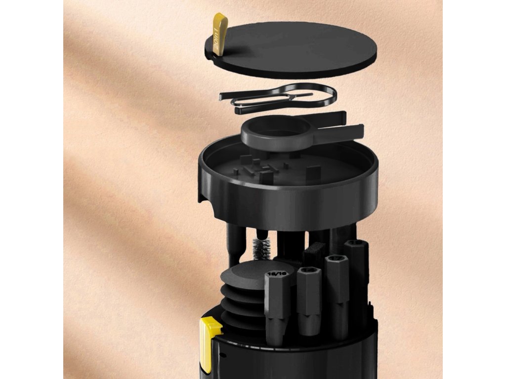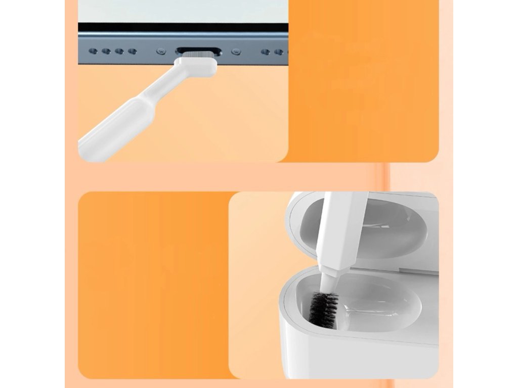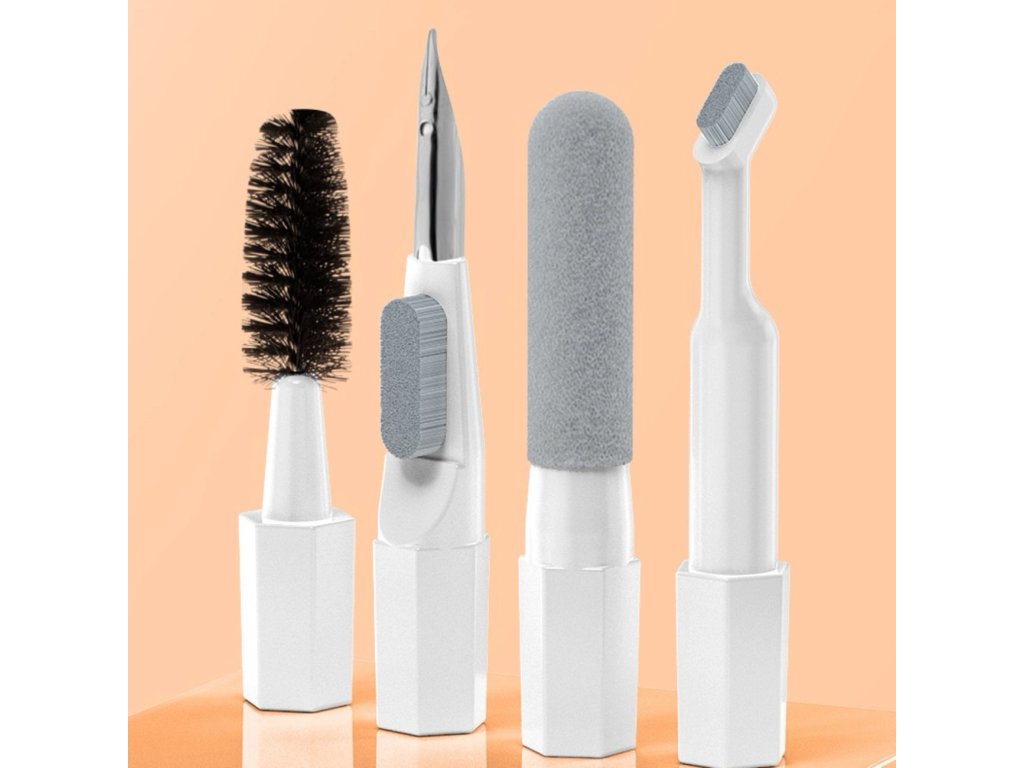 Sada obsahuje nástroje s rôznou tvrdosťou, tvarom aj veľkosťou – od jemných štetín na displeje po pevné kefky na štrbiny medzi klávesmi. Priložený prachový ofukovač, nástroje na vyberanie kláves, čistič do nabíjacích priestorov slúchadiel či presný hrot robia z tejto sady skutočne univerzálne riešenie.