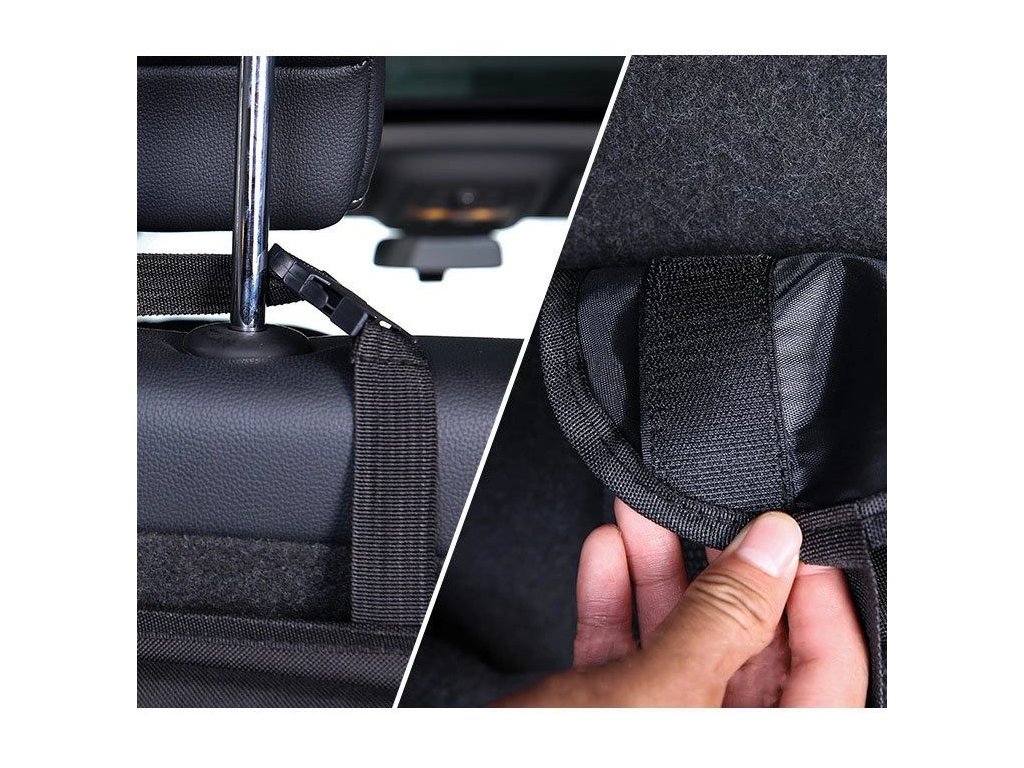 Inštalácia pomocou pásikov so suchým zipsom alebo popruhov je rýchla a bez náradia. Organizér je vyrobený z pevného a ľahko čistiteľného materiálu, ktorý vydrží každodenné používanie.