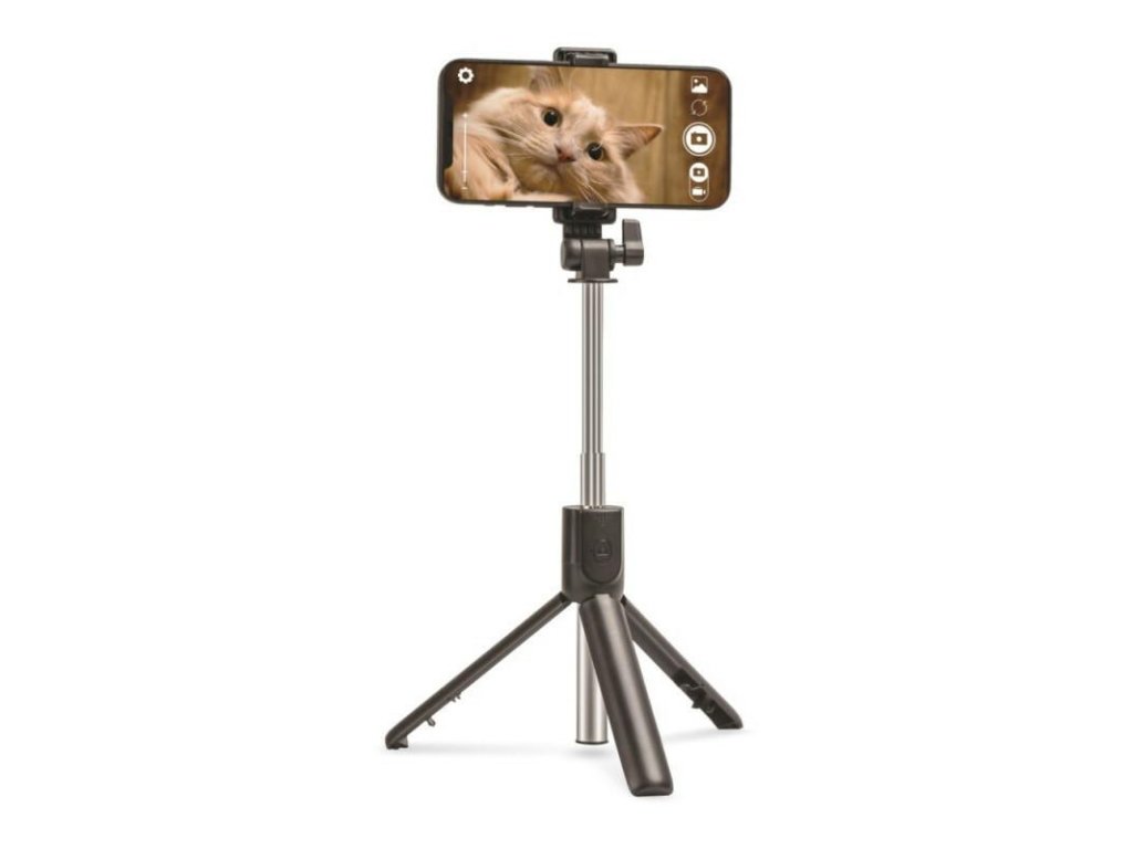 Selfie stick sa dá jednoducho premeniť na stabilný tripod, čo oceníte pri skupinových fotografiách alebo natáčaní vlogov. Je vyrobený z odolných materiálov, má kompaktný dizajn a v zloženom stave zaberie minimum miesta. Elegantné čierne prevedenie mu dodáva moderný vzhľad.