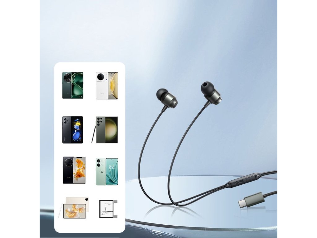 Univerzálne USB-C slúchadlá vhodné pre smartfóny, tablety a notebooky s USB-C portom. Fungujú bez adaptérov a sú kompatibilné s Android aj Windows zariadeniami.