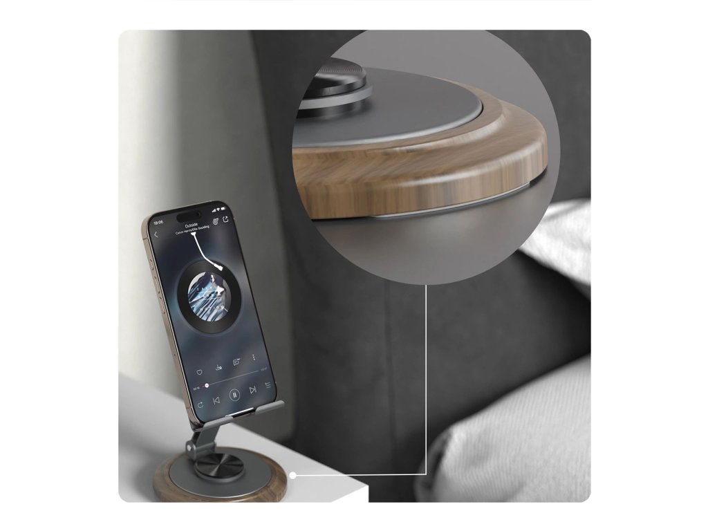 Kompatibilný s väčšinou smartfónov a menších tabletov. Perfektný doplnok na pracovný stôl, kuchynskú linku alebo nočný stolík. Umožňuje pohodlné používanie zariadenia bez držania v ruke.