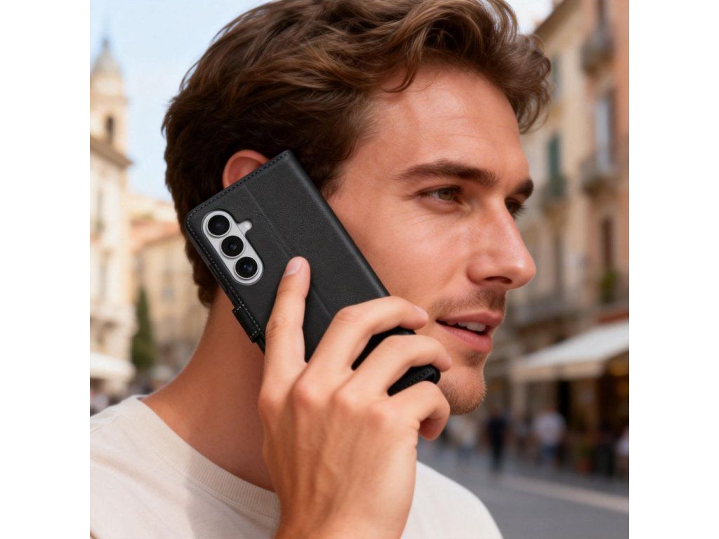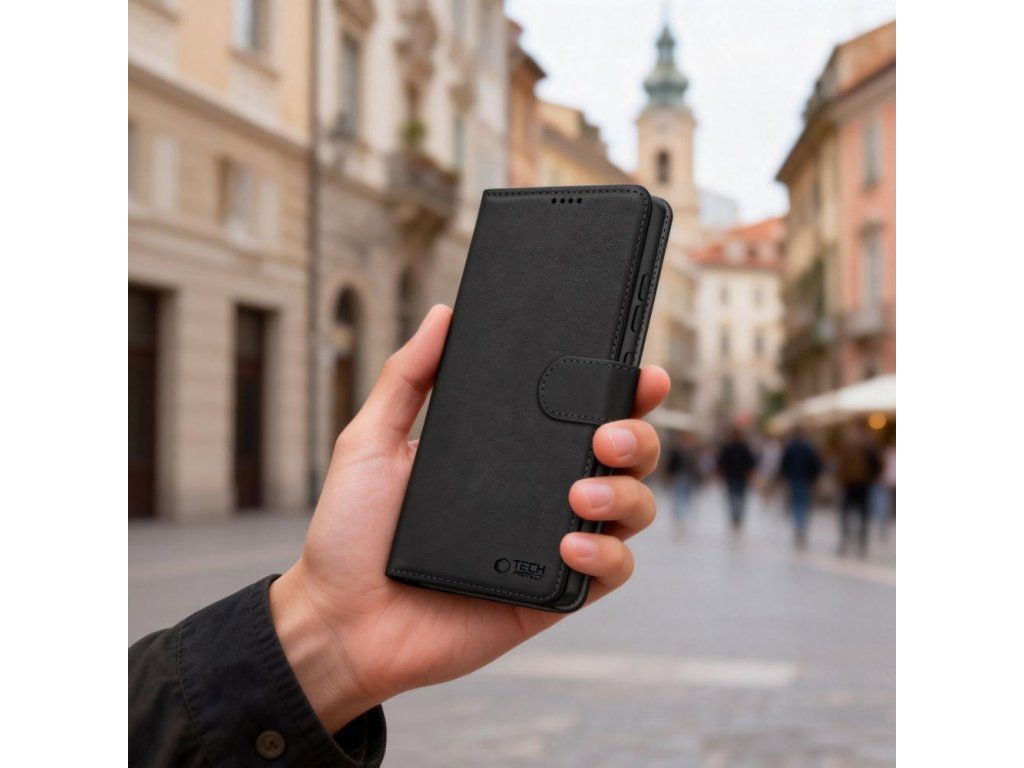 Tech-Protect Wallet je knižkový kryt pre Samsung Galaxy S26 z eko-kože, ktorý spája elegantný vzhľad s praktickou funkčnosťou pre každodenné použitie.