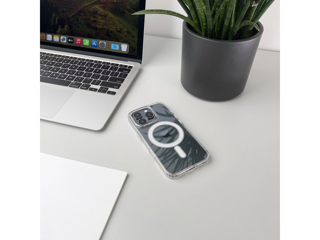 Podporuje bezdrôtové MagSafe nabíjanie aj používanie magnetického príslušenstva bez nutnosti zloženia krytu. Povrchová úprava je navrhnutá tak, aby bola odolná proti žltnutiu a zachovala si číry vzhľad aj pri dlhšom používaní.