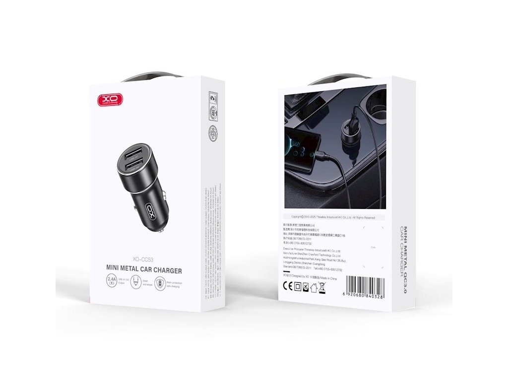 XO CC53 autonabíjačka do auta 12W – 2× USB-A, čierna